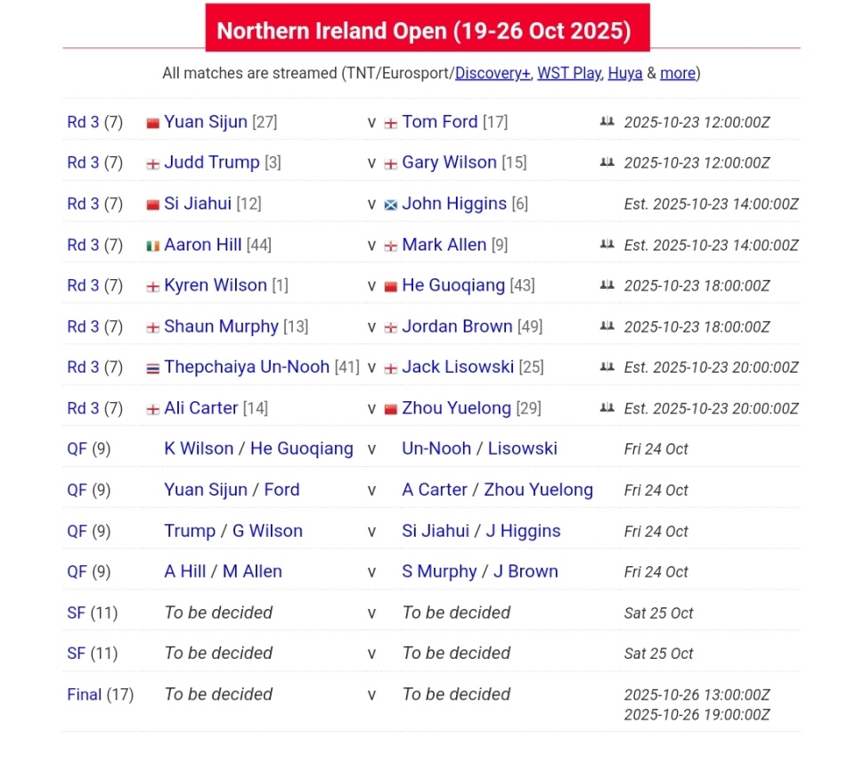 北爱尔兰公开赛战报赛程,中国3战全胜,4人进16强,吴宜泽害了世冠病